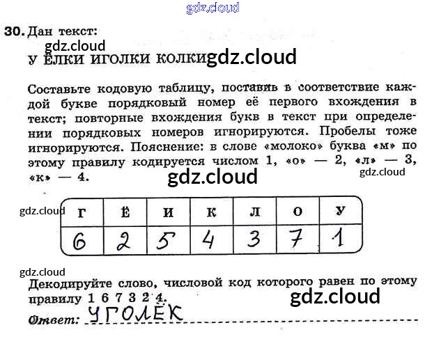 Ответ на задание 30 Рабочая тетрадь Информатика за 7 (седьмой) класс Босова 2018