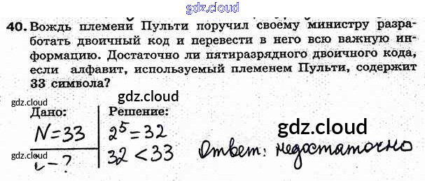 Ответ на задание 40 Рабочая тетрадь Информатика за 7 (седьмой) класс Босова 2018