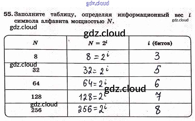 Ответ на задание 55 Рабочая тетрадь Информатика за 7 (седьмой) класс Босова 2018