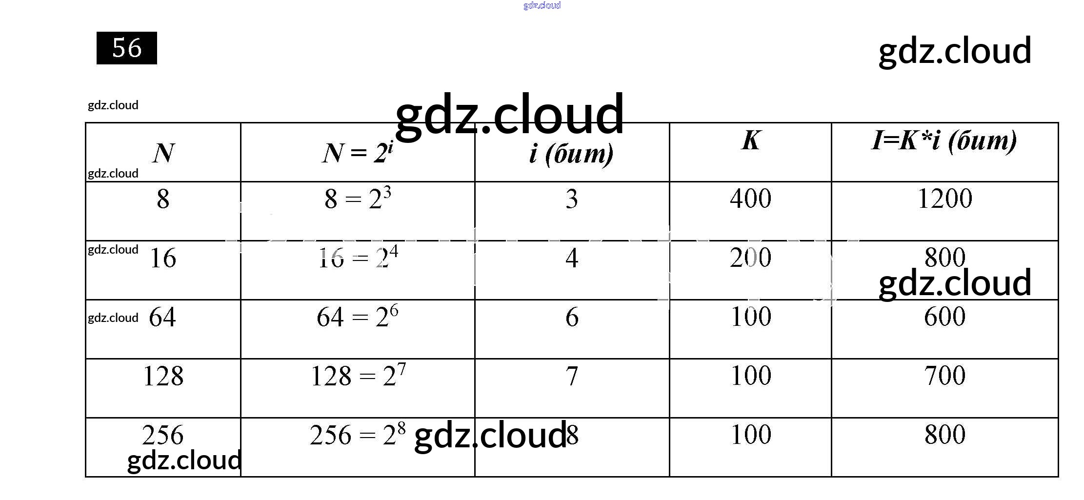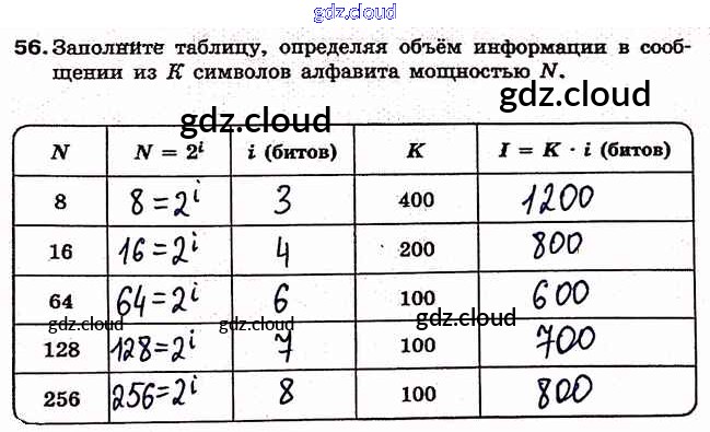 Ответ на задание 56 Рабочая тетрадь Информатика за 7 (седьмой) класс Босова 2018