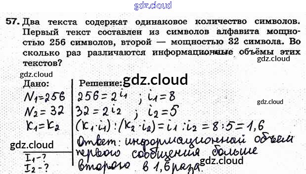Ответ на задание 57 Рабочая тетрадь Информатика за 7 (седьмой) класс Босова 2018