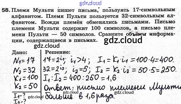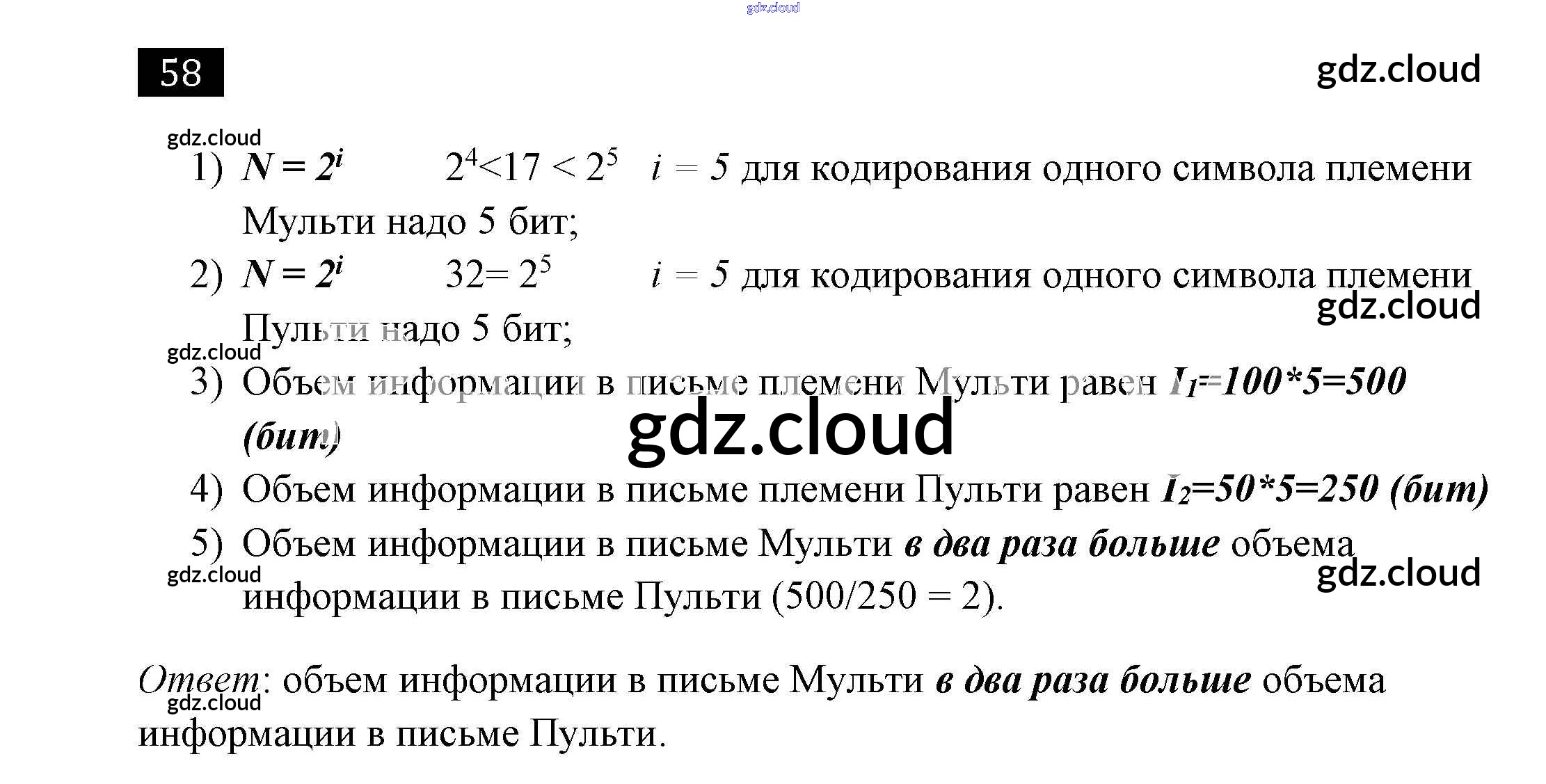 Ответ на задание 58 Рабочая тетрадь Информатика за 7 (седьмой) класс Босова 2018