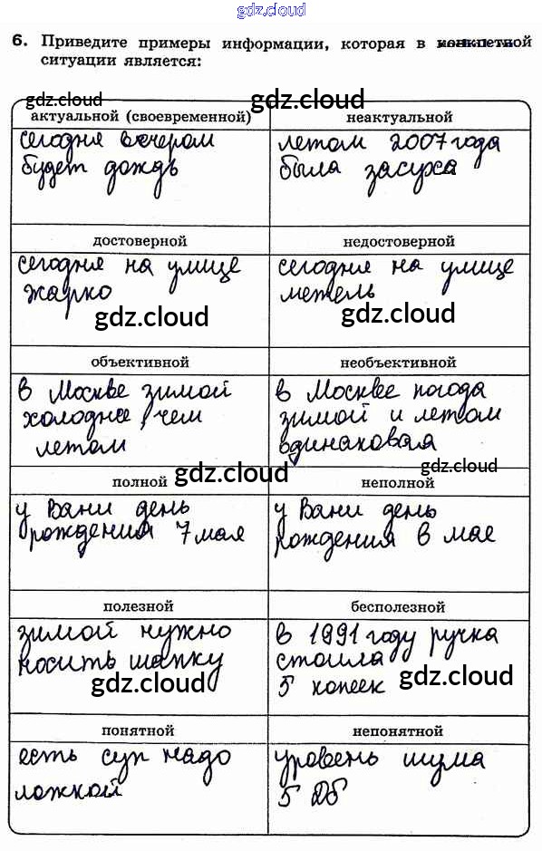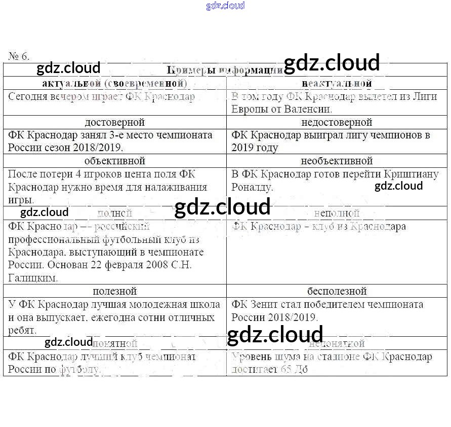 Ответ на задание 6 Рабочая тетрадь Информатика за 7 (седьмой) класс Босова 2018