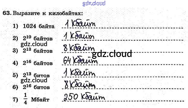 Ответ на задание 63 Рабочая тетрадь Информатика за 7 (седьмой) класс Босова 2018