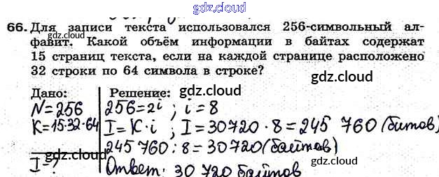 Ответ на задание 66 Рабочая тетрадь Информатика за 7 (седьмой) класс Босова 2018