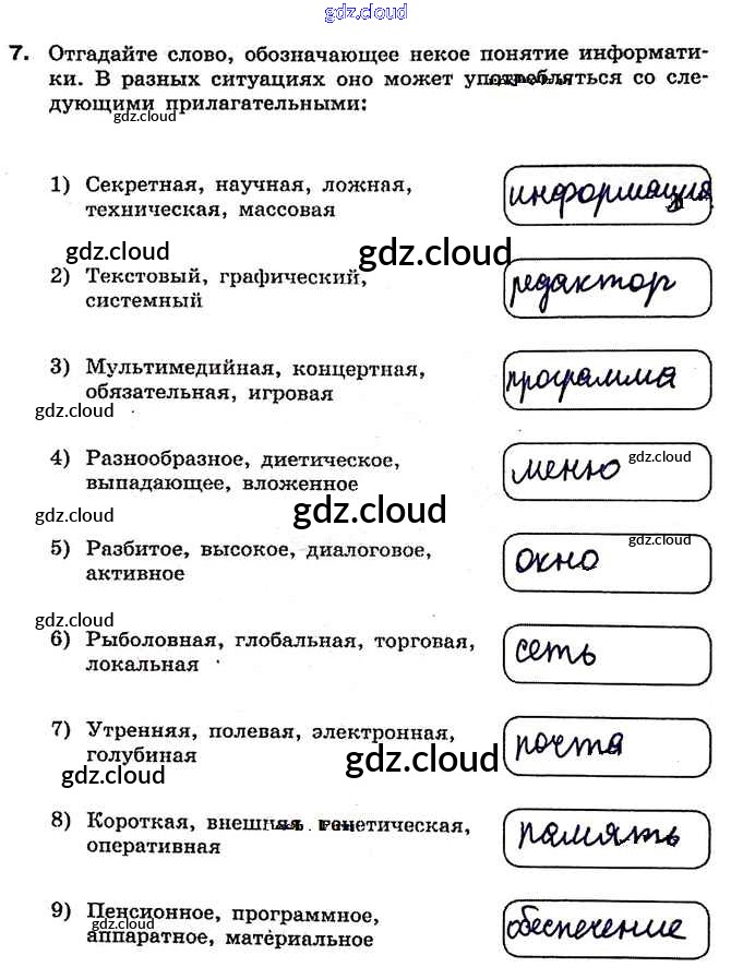 Ответ на задание 7 Рабочая тетрадь Информатика за 7 (седьмой) класс Босова 2018