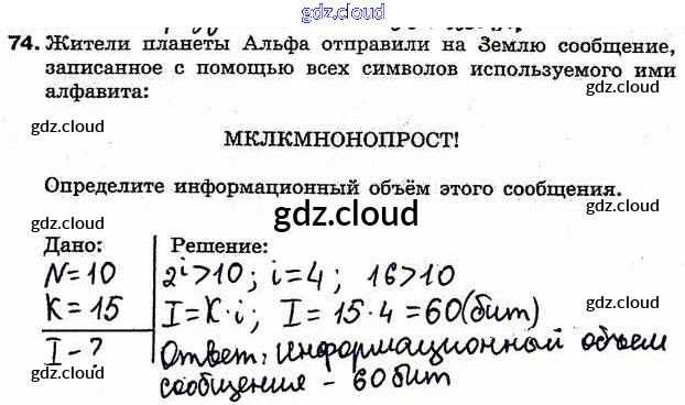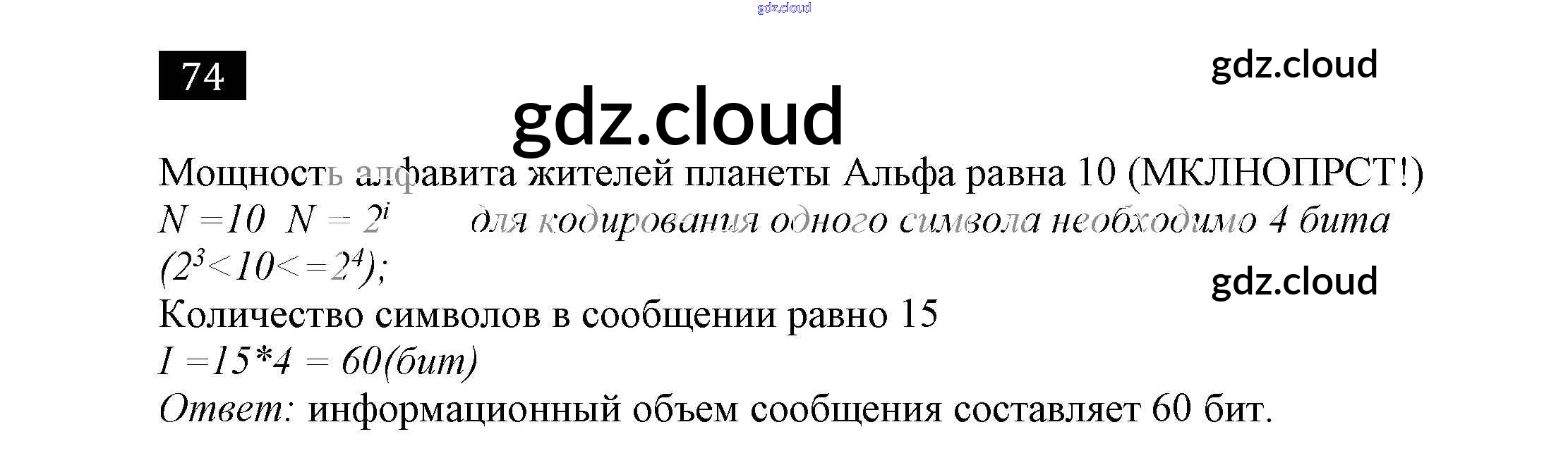 Ответ на задание 74 Рабочая тетрадь Информатика за 7 (седьмой) класс Босова 2018