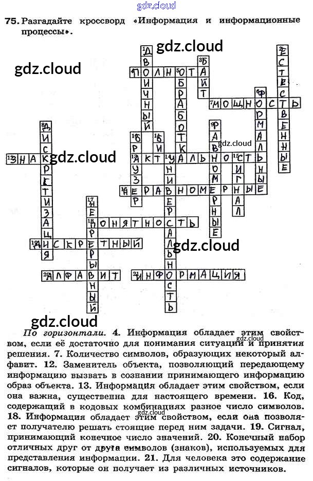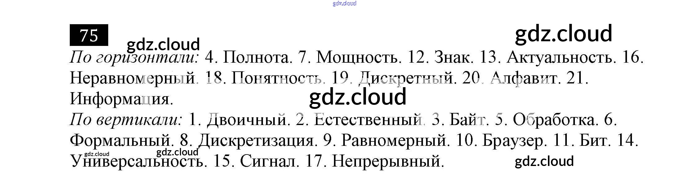 Ответ на задание 75 Рабочая тетрадь Информатика за 7 (седьмой) класс Босова 2018
