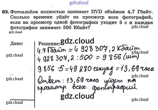 Ответ на задание 83 Рабочая тетрадь Информатика за 7 (седьмой) класс Босова 2018