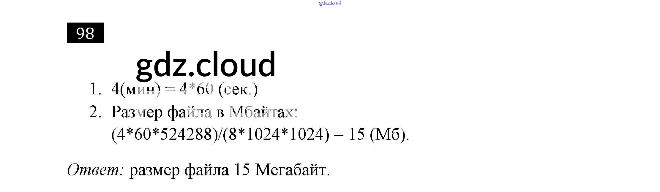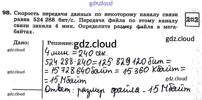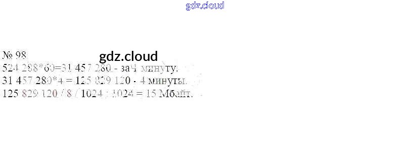 Ответ на задание 98 Рабочая тетрадь Информатика за 7 (седьмой) класс Босова 2018