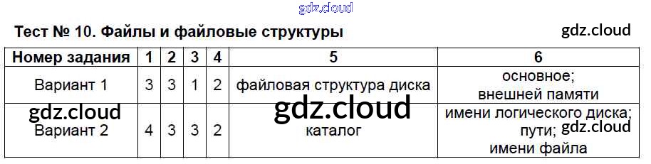 Ответ на задание Тест №10. Файлы и файловые структуры Контрольно-измерительные материалы (КИМ) Информатика за 7 (седьмой) класс Масленикова 2017
