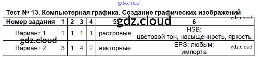 Ответ на задание Тест №13. Компьютерная графика. Создание графических изображений Контрольно-измерительные материалы (КИМ) Информатика за 7 (седьмой) класс Масленикова 2017