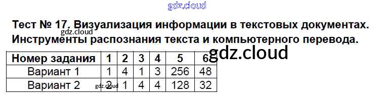 Ответ на задание Тест №17. Визуализация информации в текстовых документах Контрольно-измерительные материалы (КИМ) Информатика за 7 (седьмой) класс Масленикова 2017