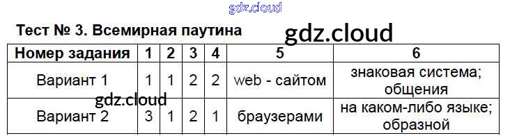 Ответ на задание Тест №3. Всемирная паутина Контрольно-измерительные материалы (КИМ) Информатика за 7 (седьмой) класс Масленикова 2017