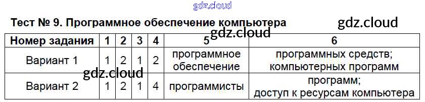 Ответ на задание Тест №9. Программное обеспечение компьютера Контрольно-измерительные материалы (КИМ) Информатика за 7 (седьмой) класс Масленикова 2017