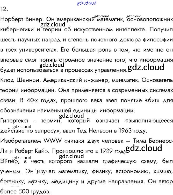 Ответ на задание 12 Учебник Информатика за 7 (седьмой) класс Босова 2015 ФГОС онлайн и без номера телефона.