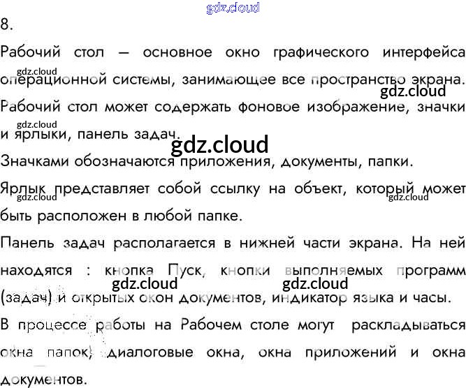 Ответ на задание 8 Учебник Информатика за 7 (седьмой) класс Босова 2015 ФГОС онлайн и без номера телефона.