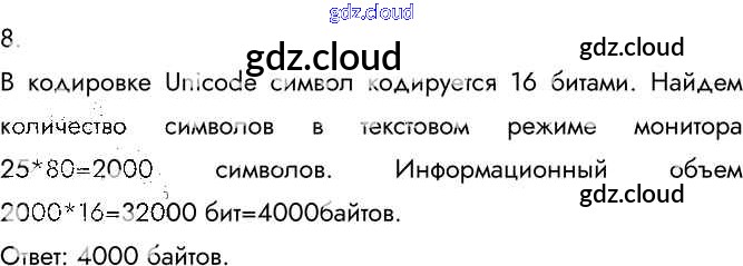 Ответ на задание 8 Учебник Информатика за 7 (седьмой) класс Босова 2015 ФГОС онлайн и без номера телефона.
