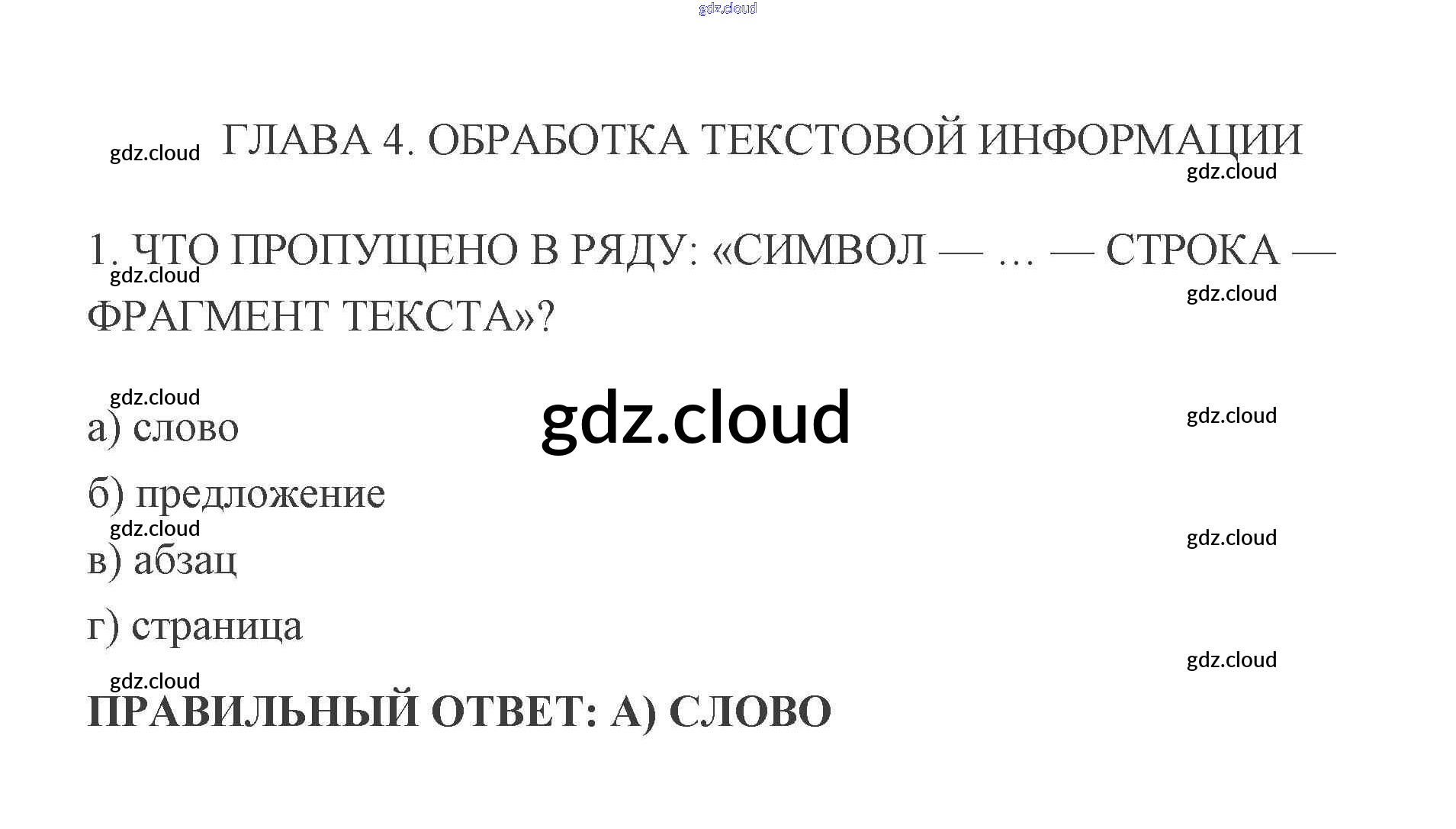 Ответы к Главе 4. Обработка текстовой информации по Информатике 8 класс Учебник Босова Бином