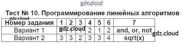 Ответ на задание Тест №10. Программирование линейных алгоритмов Контрольно-измерительные материалы (КИМ) Информатика за 8 (восьмой) класс Масленикова 2017