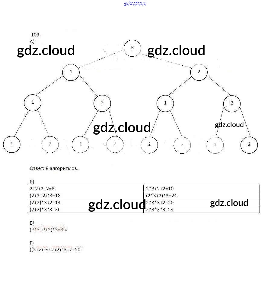 Ответ на задание 103 Рабочая тетрадь Информатика за 8 (восьмой) класс Босова 2017 Часть 1, 2