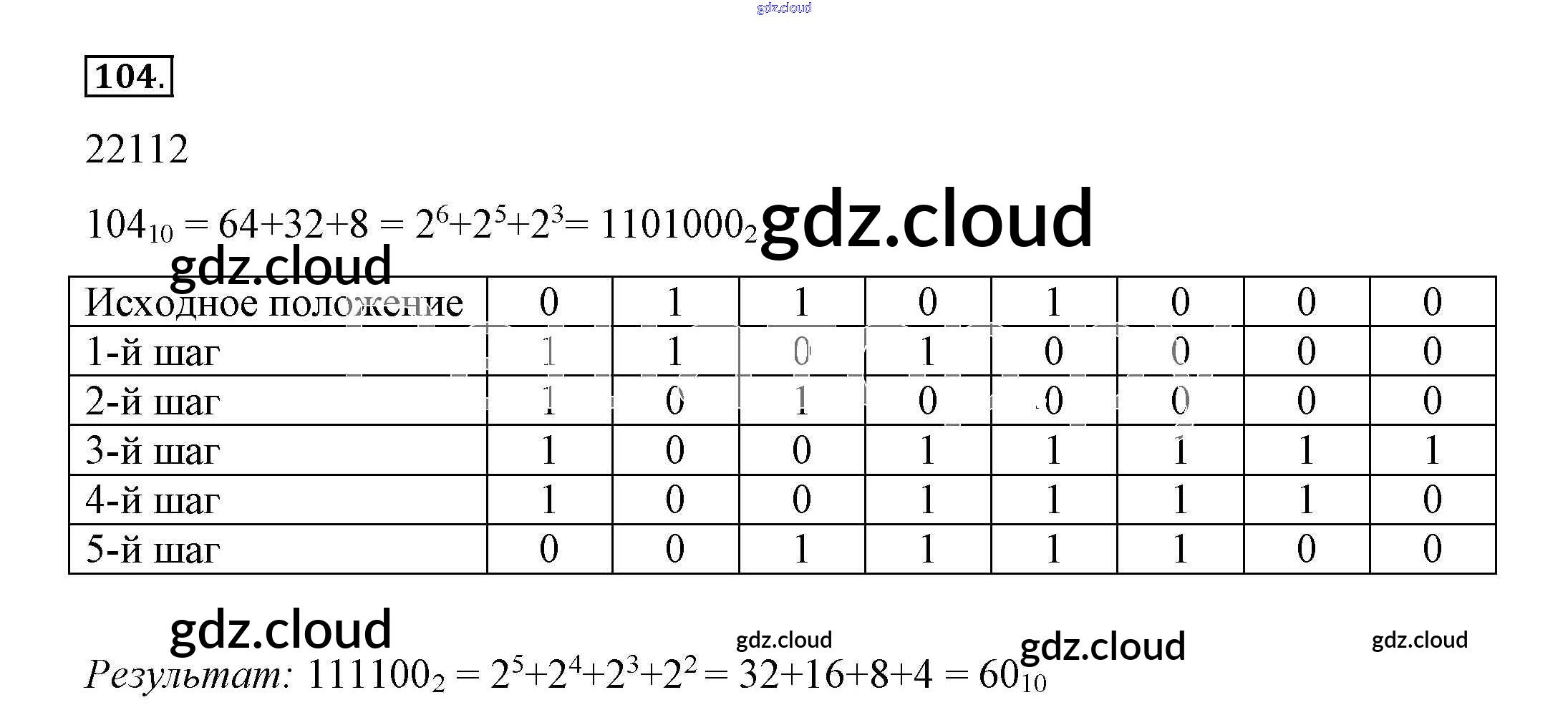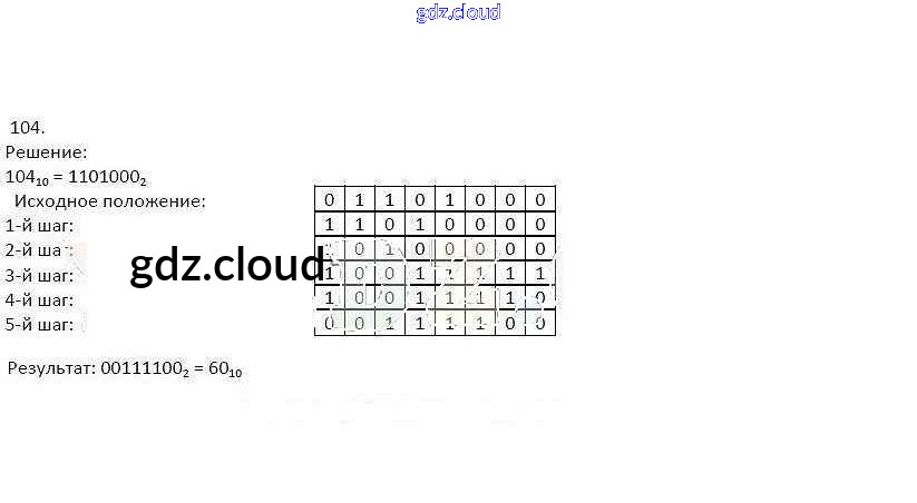 Ответ на задание 104 Рабочая тетрадь Информатика за 8 (восьмой) класс Босова 2017 Часть 1, 2