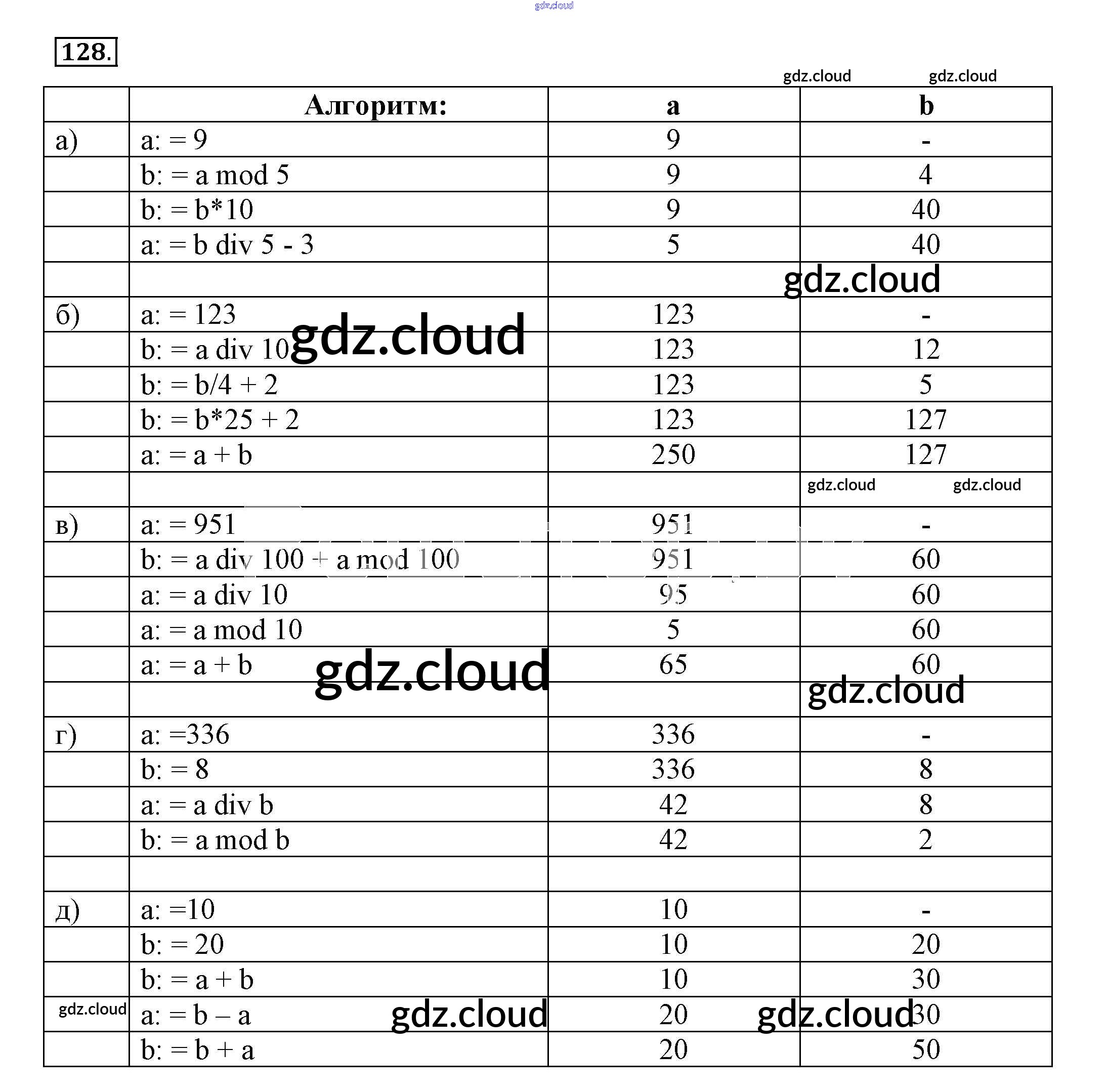 Ответ на задание 128 Рабочая тетрадь Информатика за 8 (восьмой) класс Босова 2017 Часть 1, 2