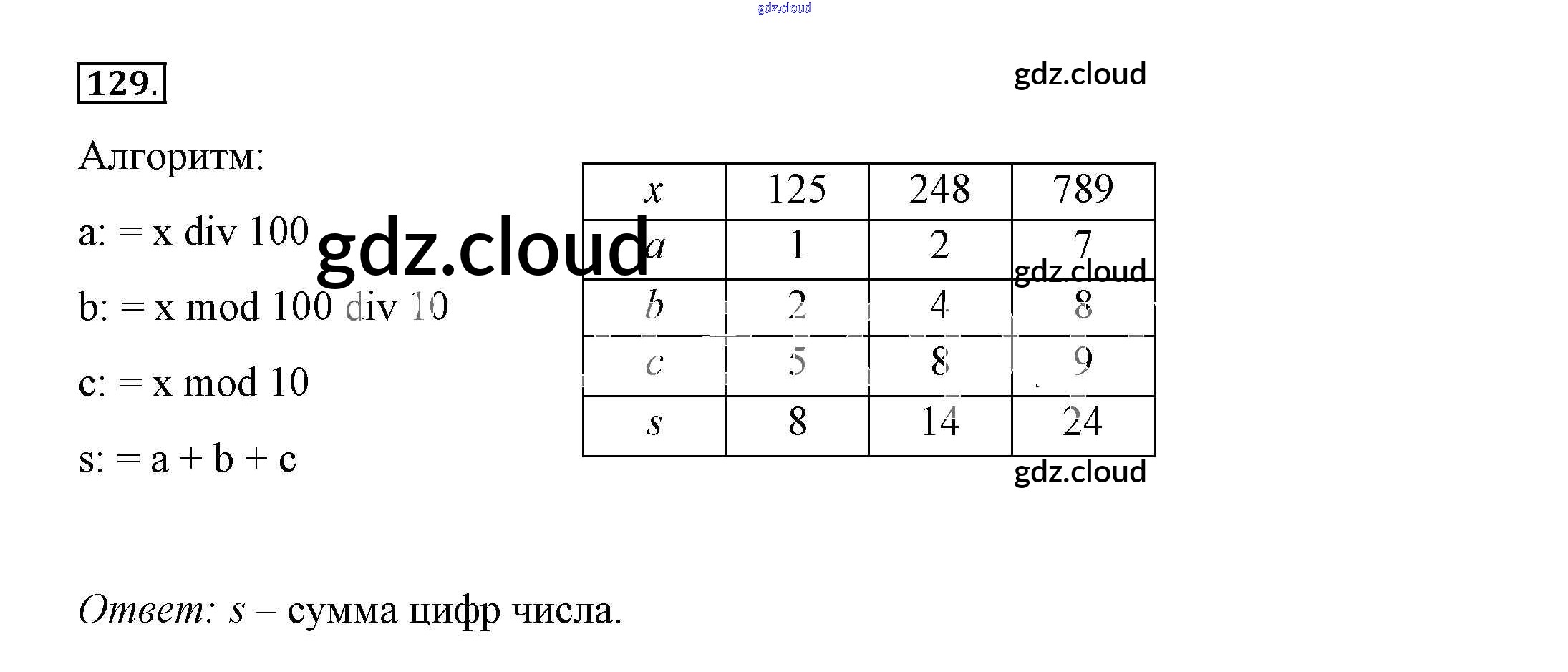 Ответ на задание 129 Рабочая тетрадь Информатика за 8 (восьмой) класс Босова 2017 Часть 1, 2