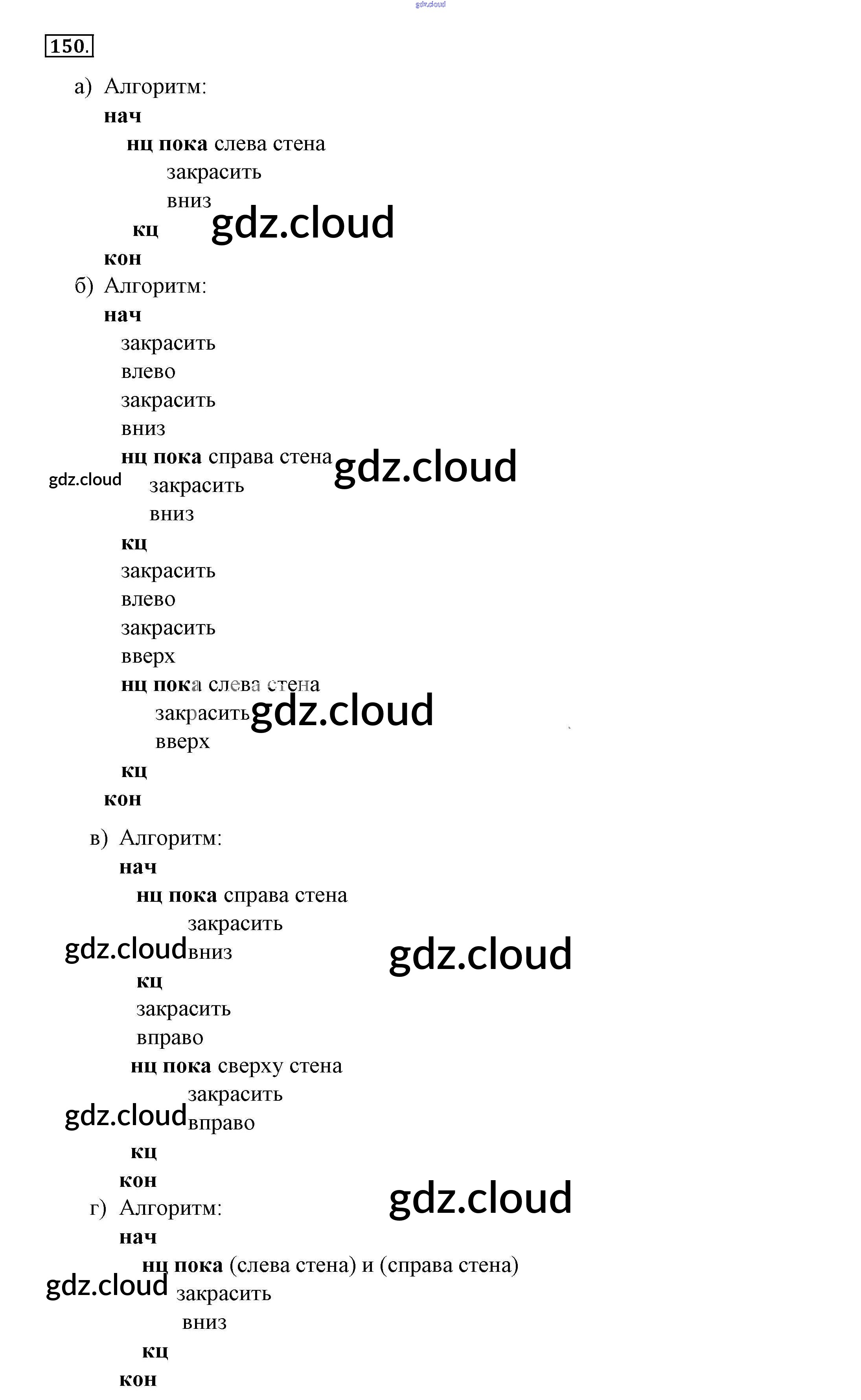 Ответ на задание 150 Рабочая тетрадь Информатика за 8 (восьмой) класс Босова 2017 Часть 1, 2