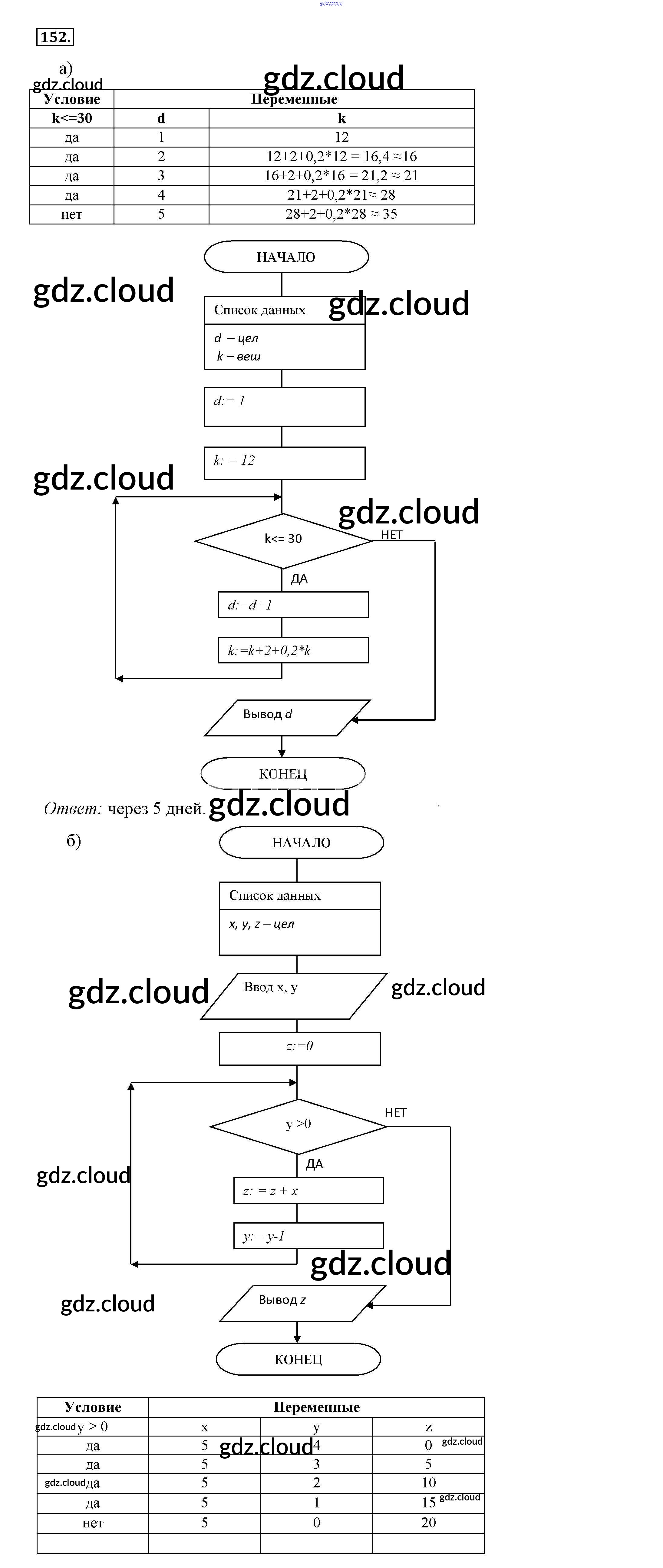 Ответ на задание 152 Рабочая тетрадь Информатика за 8 (восьмой) класс Босова 2017 Часть 1, 2