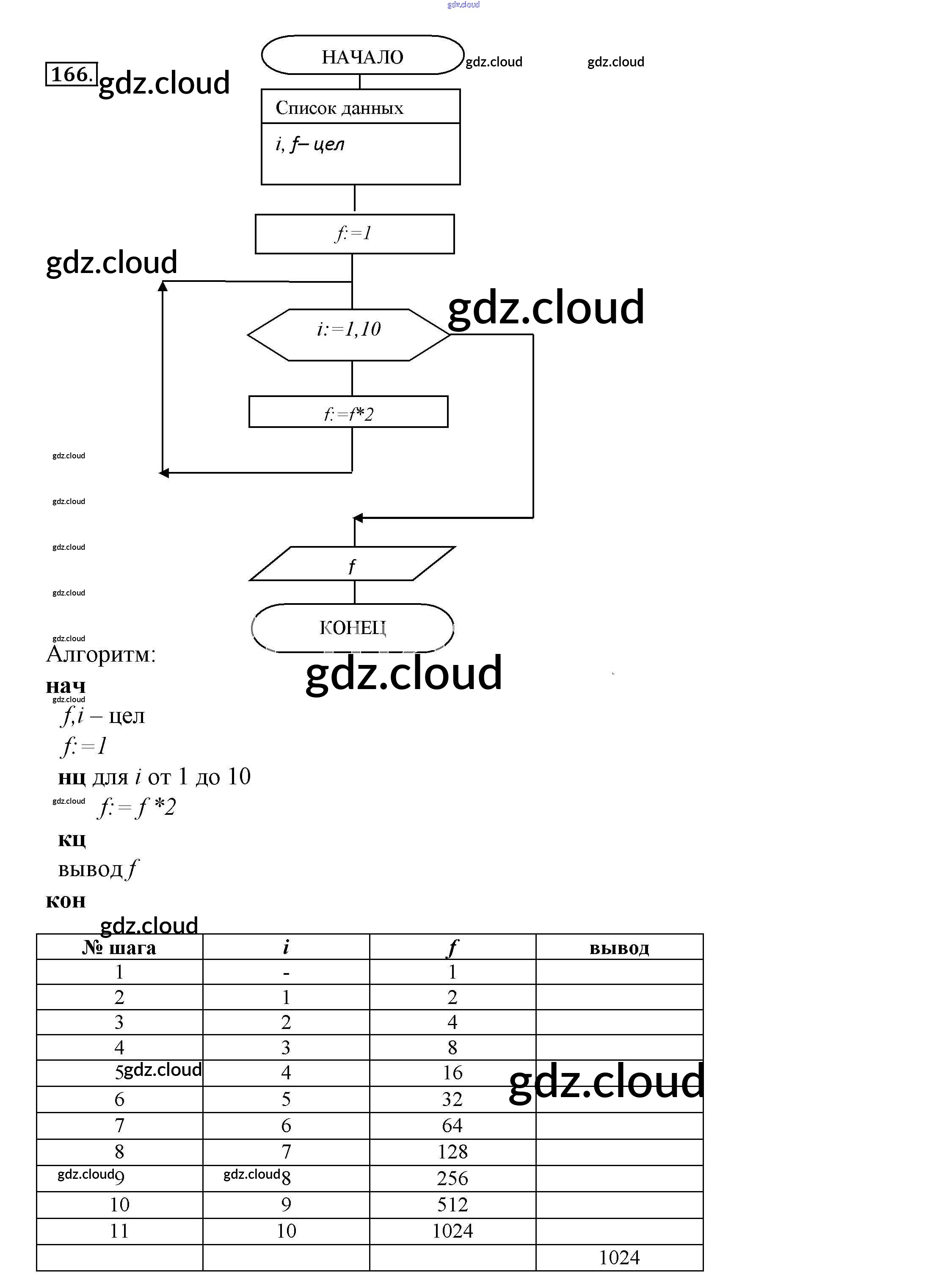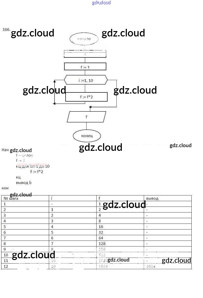 Ответ на задание 166 Рабочая тетрадь Информатика за 8 (восьмой) класс Босова 2017 Часть 1, 2