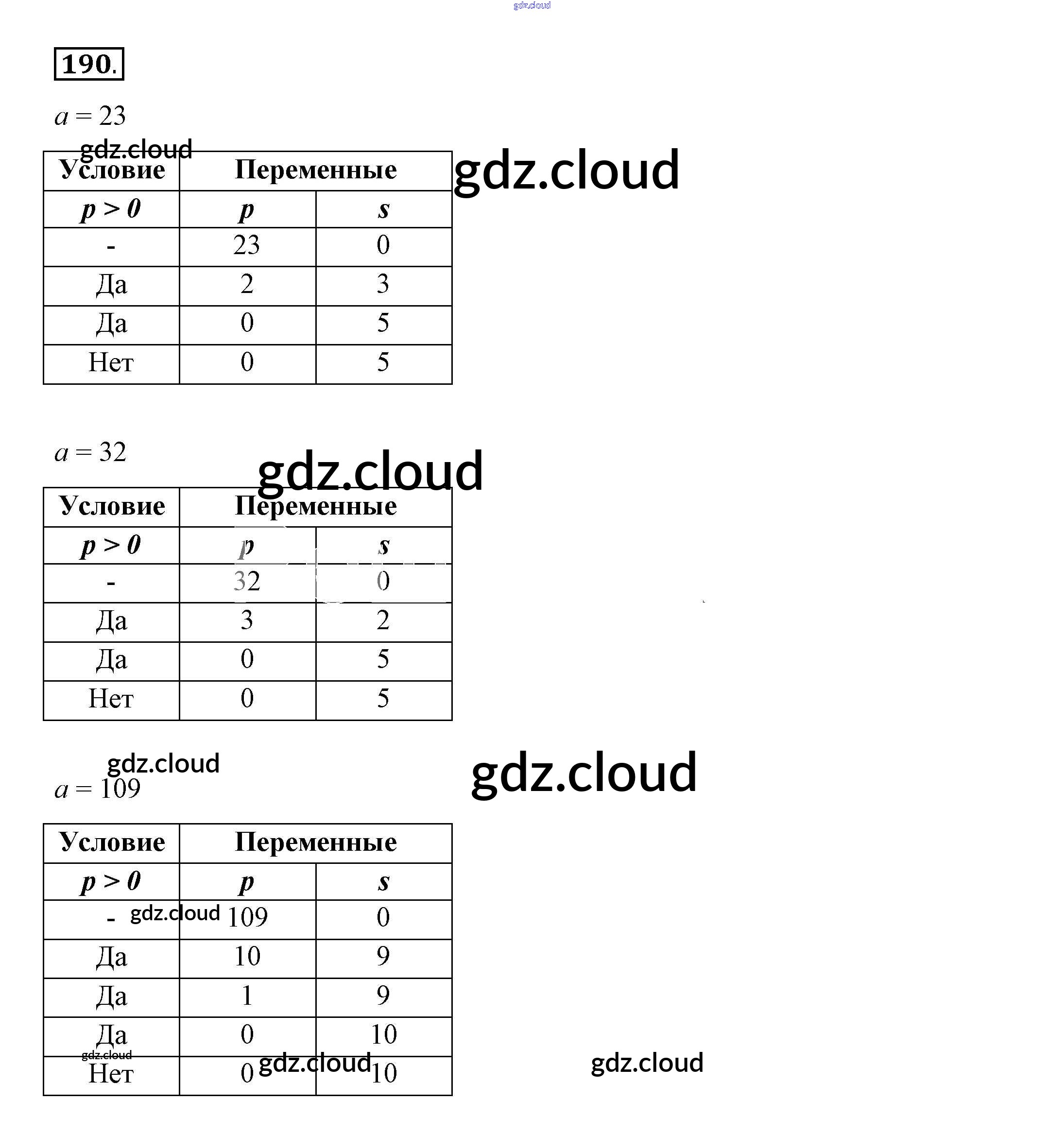 Ответ на задание 190 Рабочая тетрадь Информатика за 8 (восьмой) класс Босова 2017 Часть 1, 2