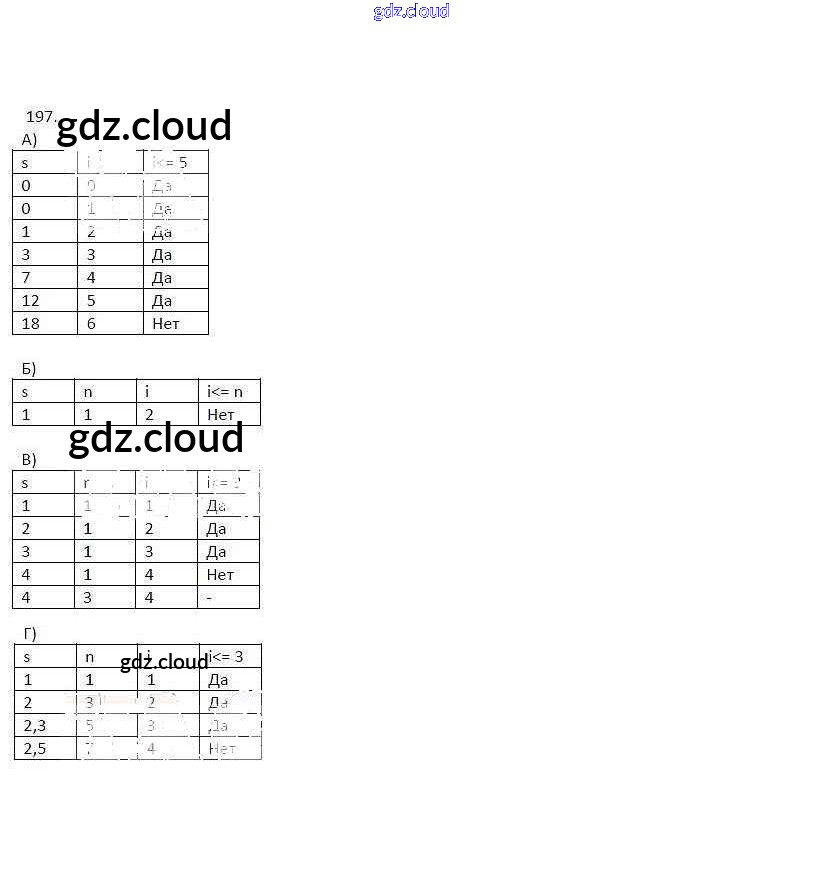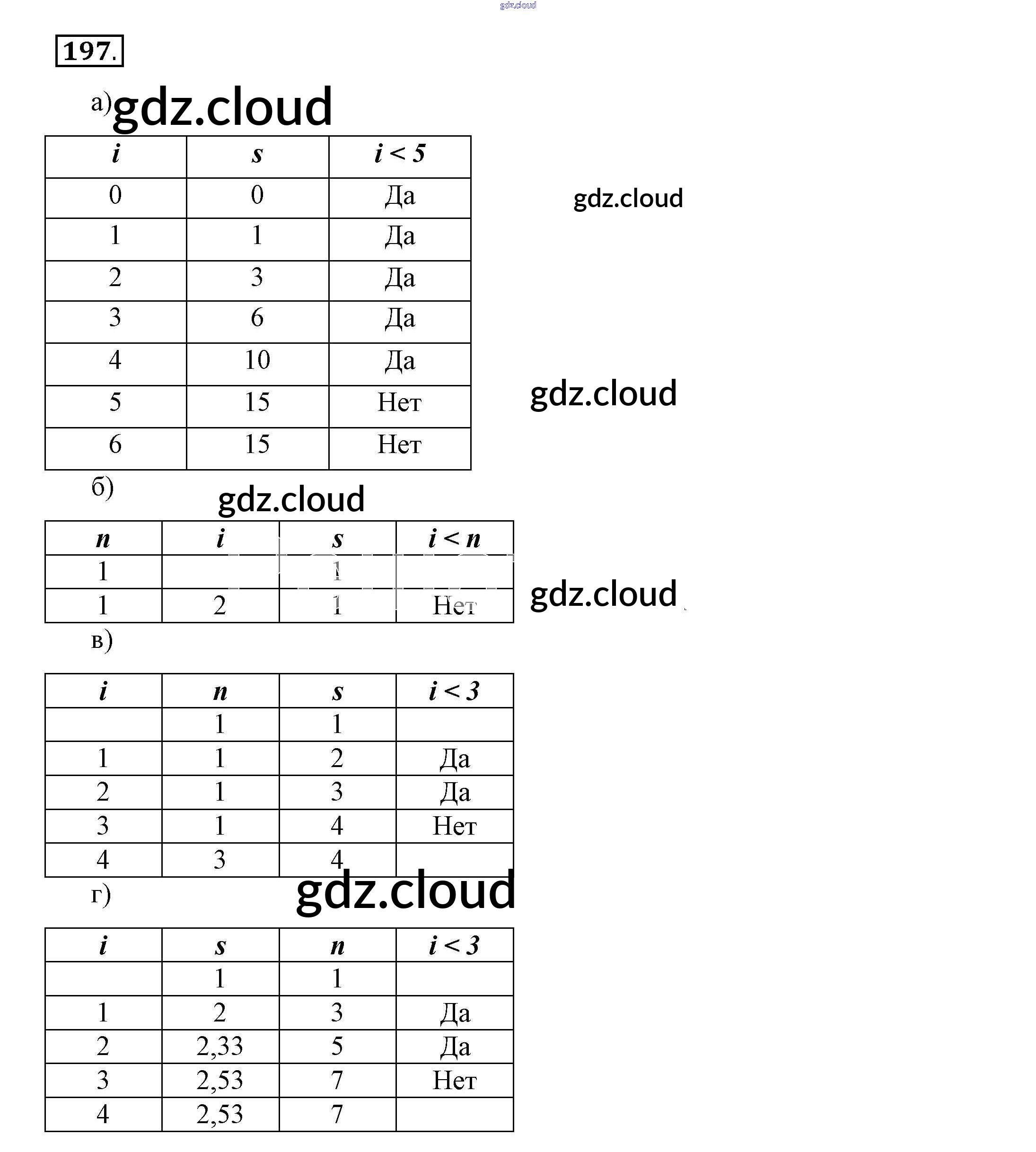 Ответ на задание 197 Рабочая тетрадь Информатика за 8 (восьмой) класс Босова 2017 Часть 1, 2