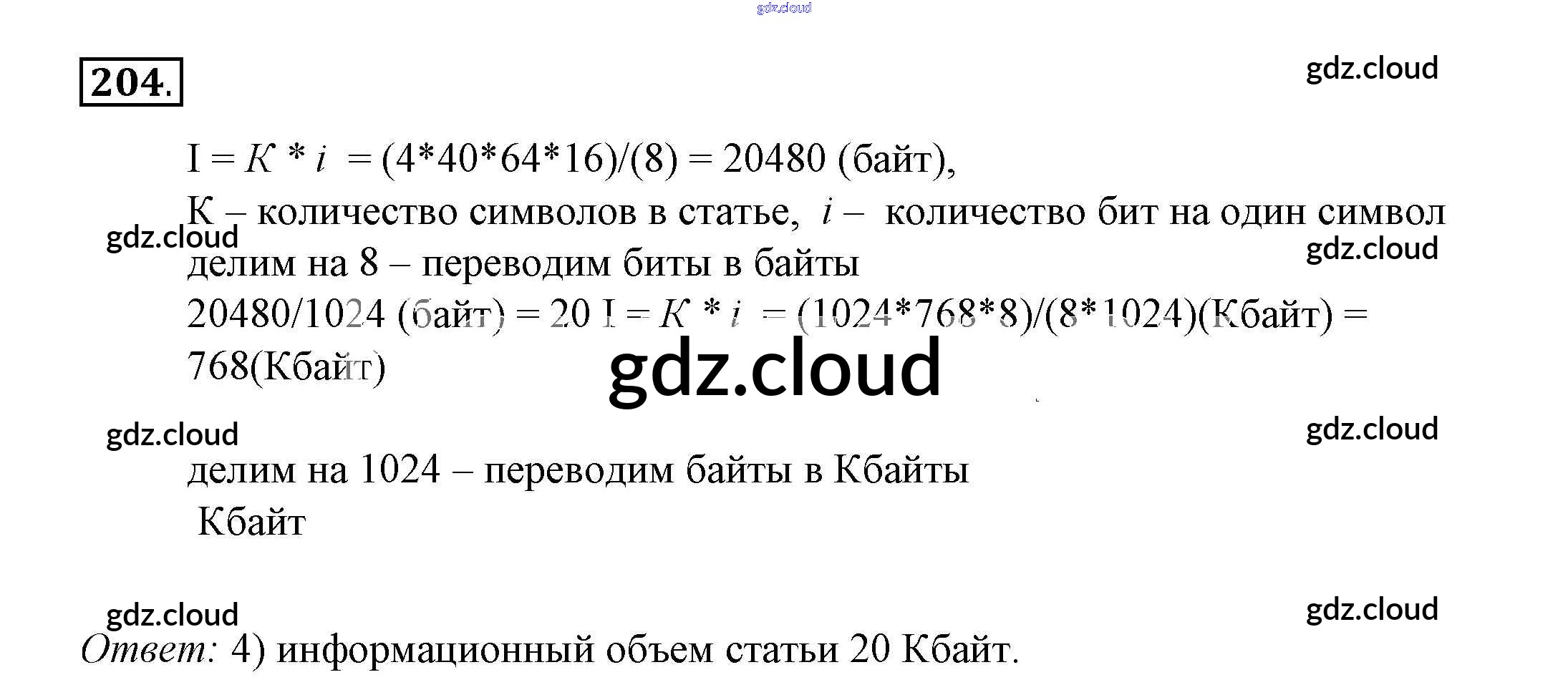 Ответ на задание 204 Рабочая тетрадь Информатика за 8 (восьмой) класс Босова 2017 Часть 1, 2