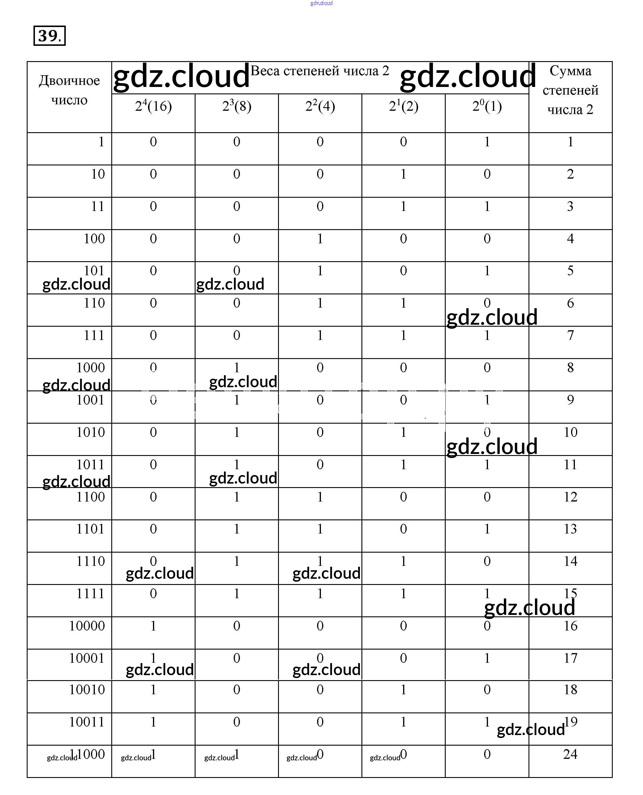 Ответ на задание 39 Рабочая тетрадь Информатика за 8 (восьмой) класс Босова 2017 Часть 1, 2