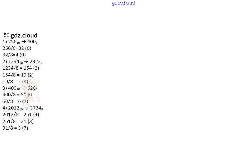 Ответ на задание 50 Рабочая тетрадь Информатика за 8 (восьмой) класс Босова 2017 Часть 1, 2