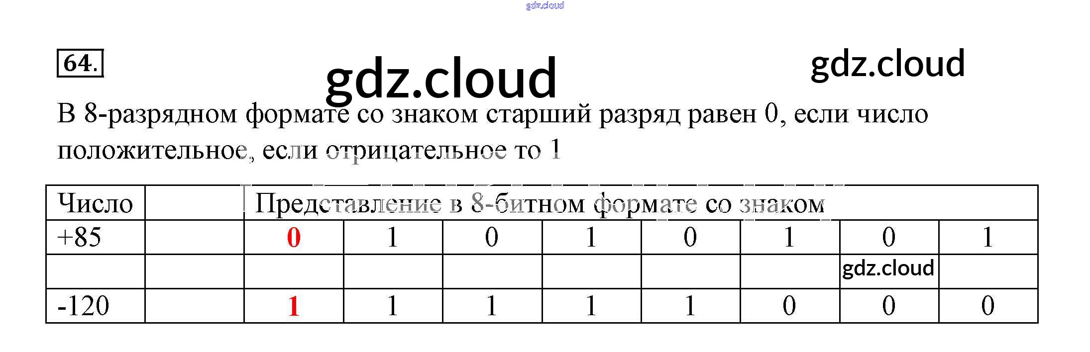 Ответ на задание 64 Рабочая тетрадь Информатика за 8 (восьмой) класс Босова 2017 Часть 1, 2