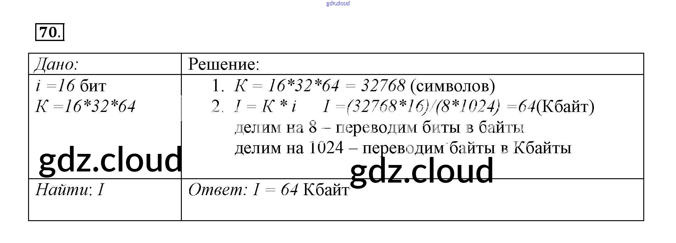 Ответ на задание 70 Рабочая тетрадь Информатика за 8 (восьмой) класс Босова 2017 Часть 1, 2