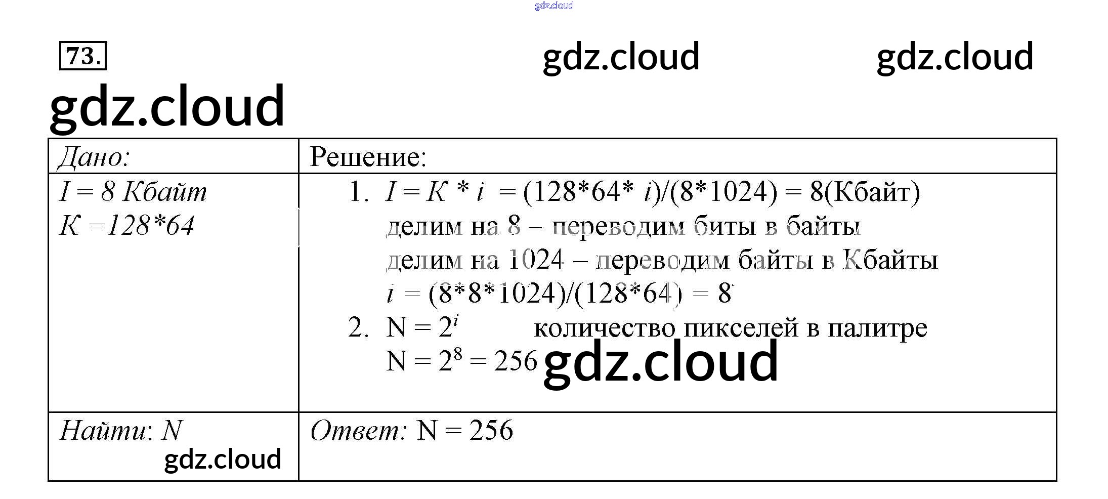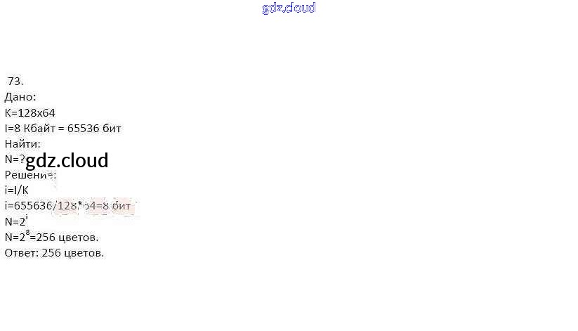 Ответ на задание 73 Рабочая тетрадь Информатика за 8 (восьмой) класс Босова 2017 Часть 1, 2