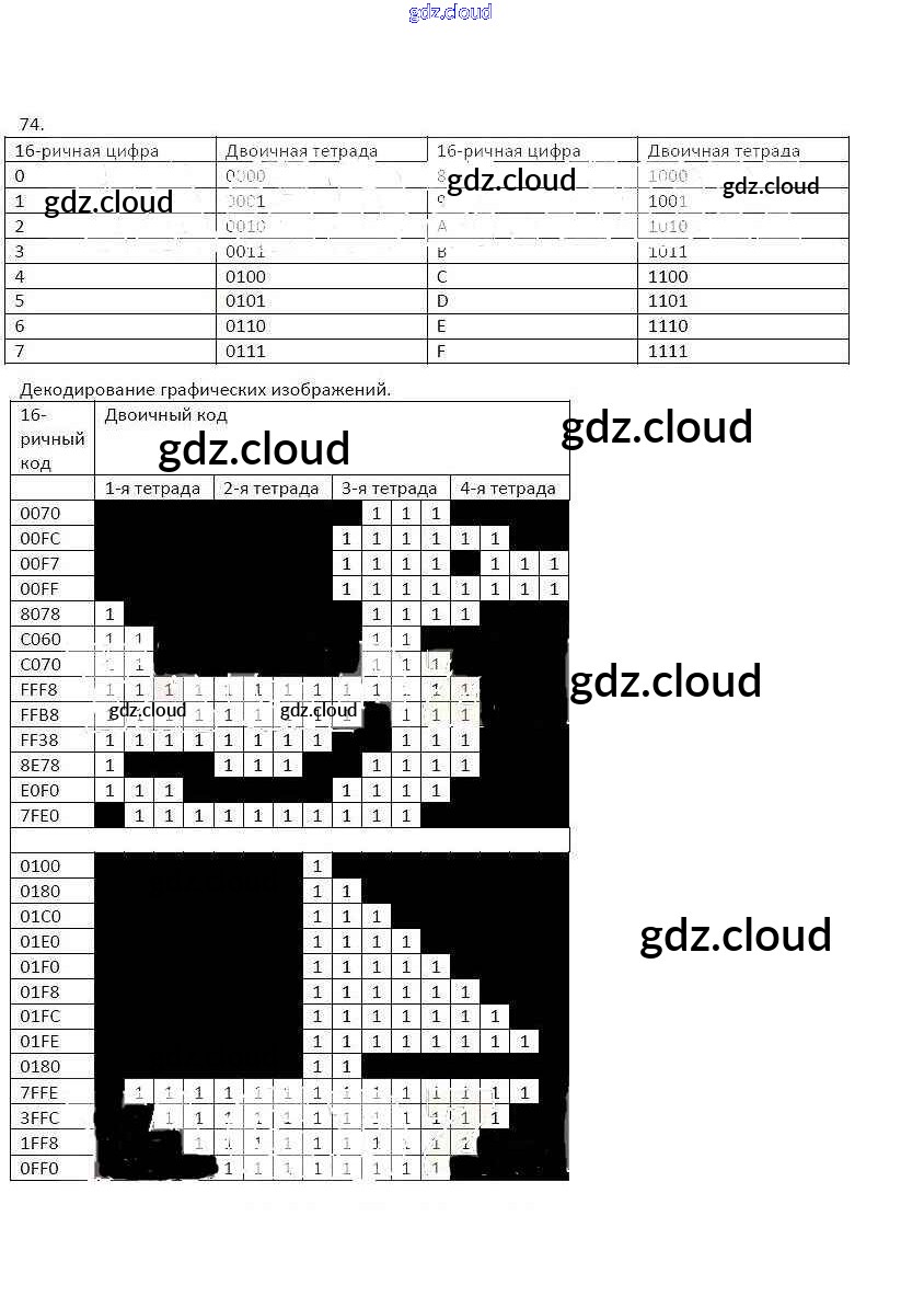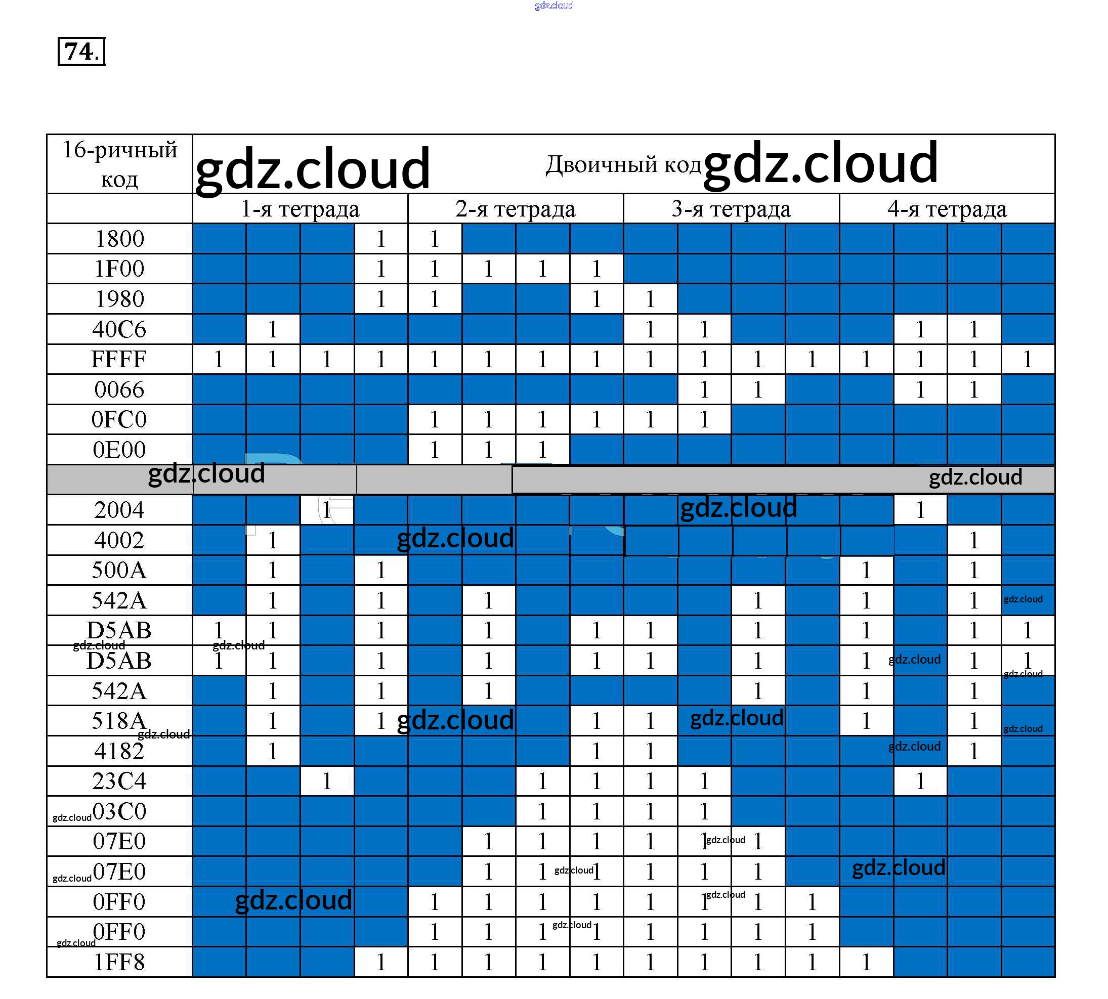 Ответ на задание 74 Рабочая тетрадь Информатика за 8 (восьмой) класс Босова 2017 Часть 1, 2