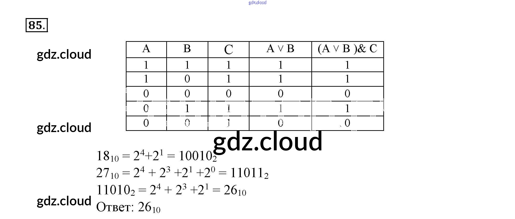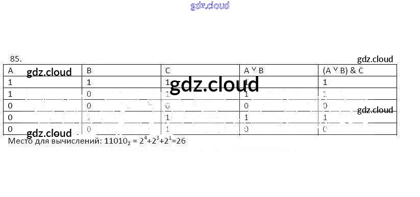 Ответ на задание 85 Рабочая тетрадь Информатика за 8 (восьмой) класс Босова 2017 Часть 1, 2