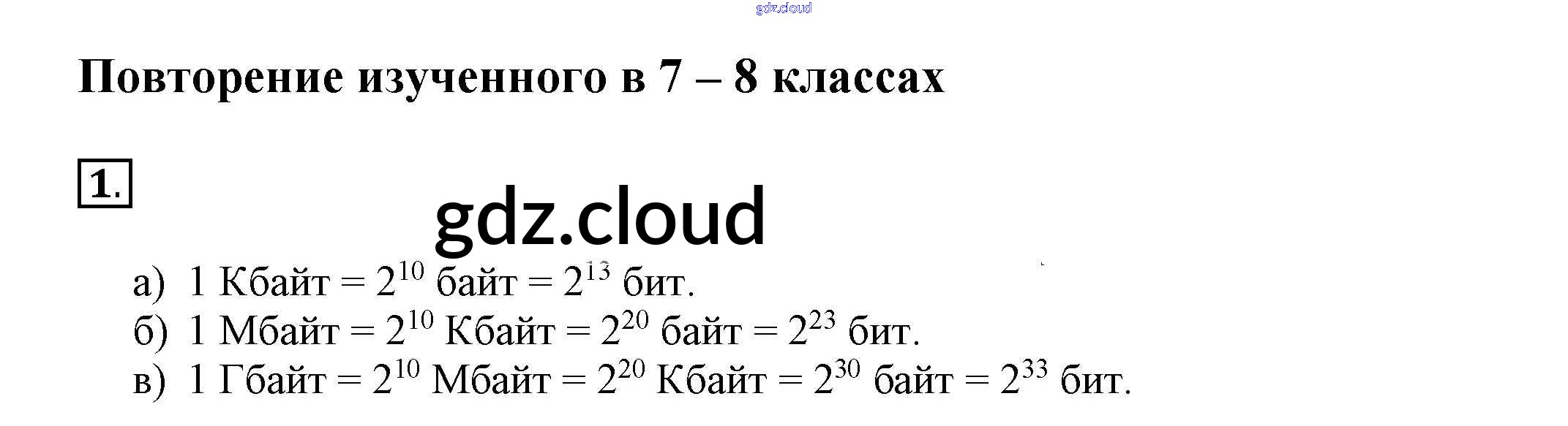 Ответ на задание 1 Рабочая тетрадь Информатика за 9 (девятый) класс Босова Базовый и углубленный уровень 2017 Часть 1, 2