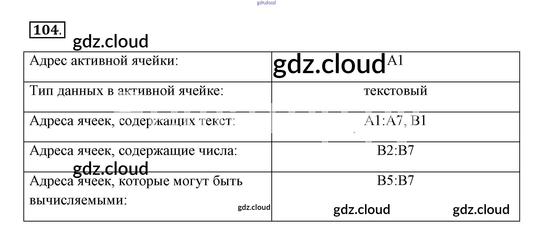 Ответ на задание 104 Рабочая тетрадь Информатика за 9 (девятый) класс Босова Базовый и углубленный уровень 2017 Часть 1, 2