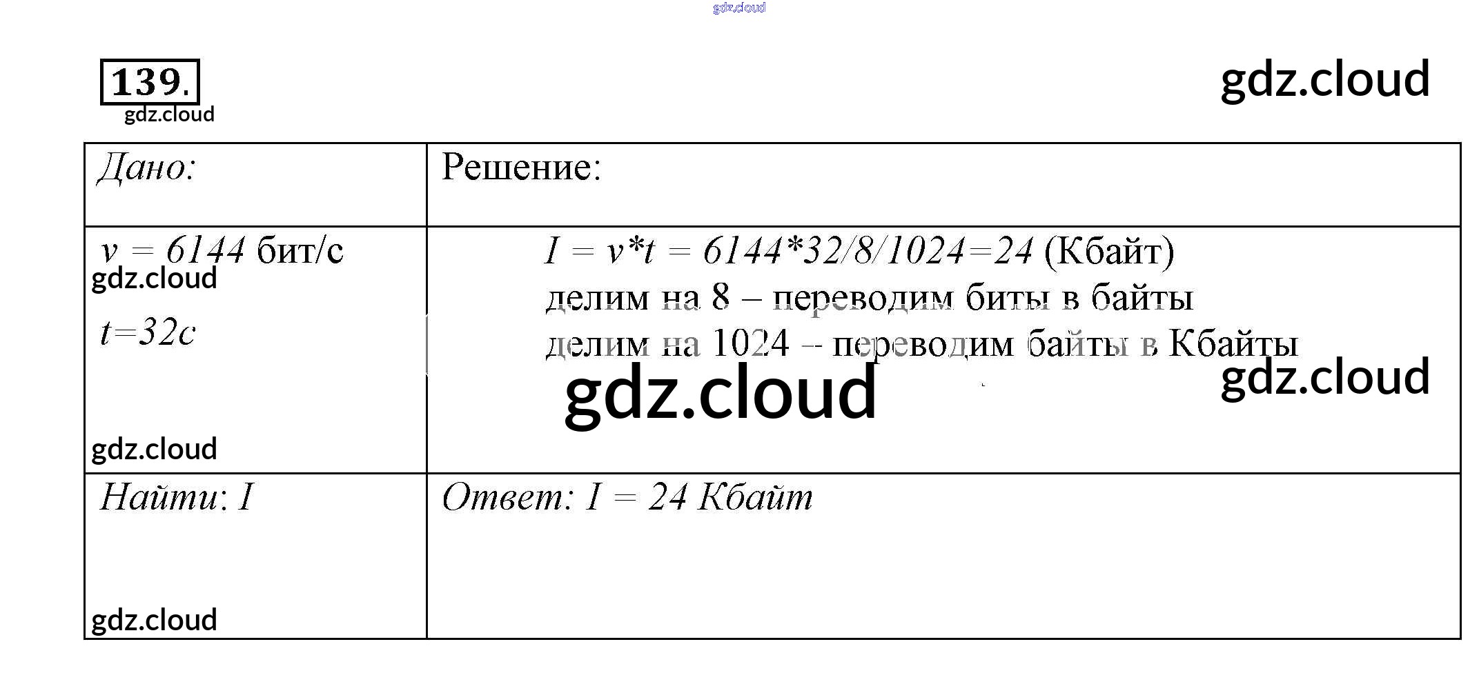 Ответ на задание 139 Рабочая тетрадь Информатика за 9 (девятый) класс Босова Базовый и углубленный уровень 2017 Часть 1, 2