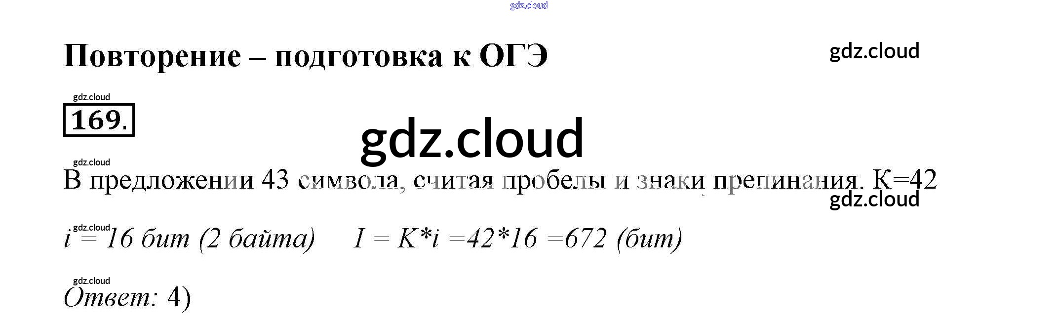 Ответ на задание 169 Рабочая тетрадь Информатика за 9 (девятый) класс Босова Базовый и углубленный уровень 2017 Часть 1, 2