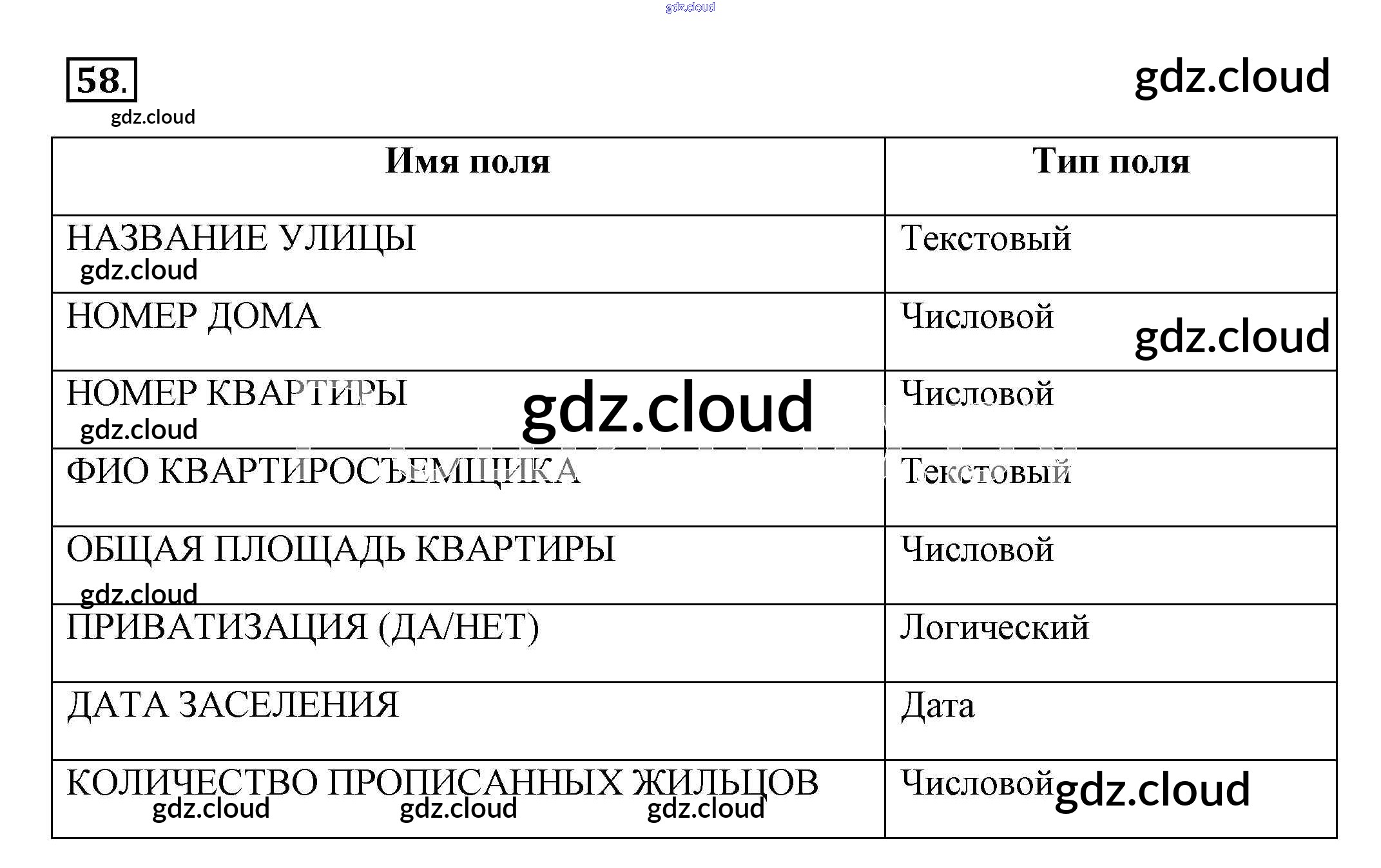 Ответ на задание 58 Рабочая тетрадь Информатика за 9 (девятый) класс Босова Базовый и углубленный уровень 2017 Часть 1, 2