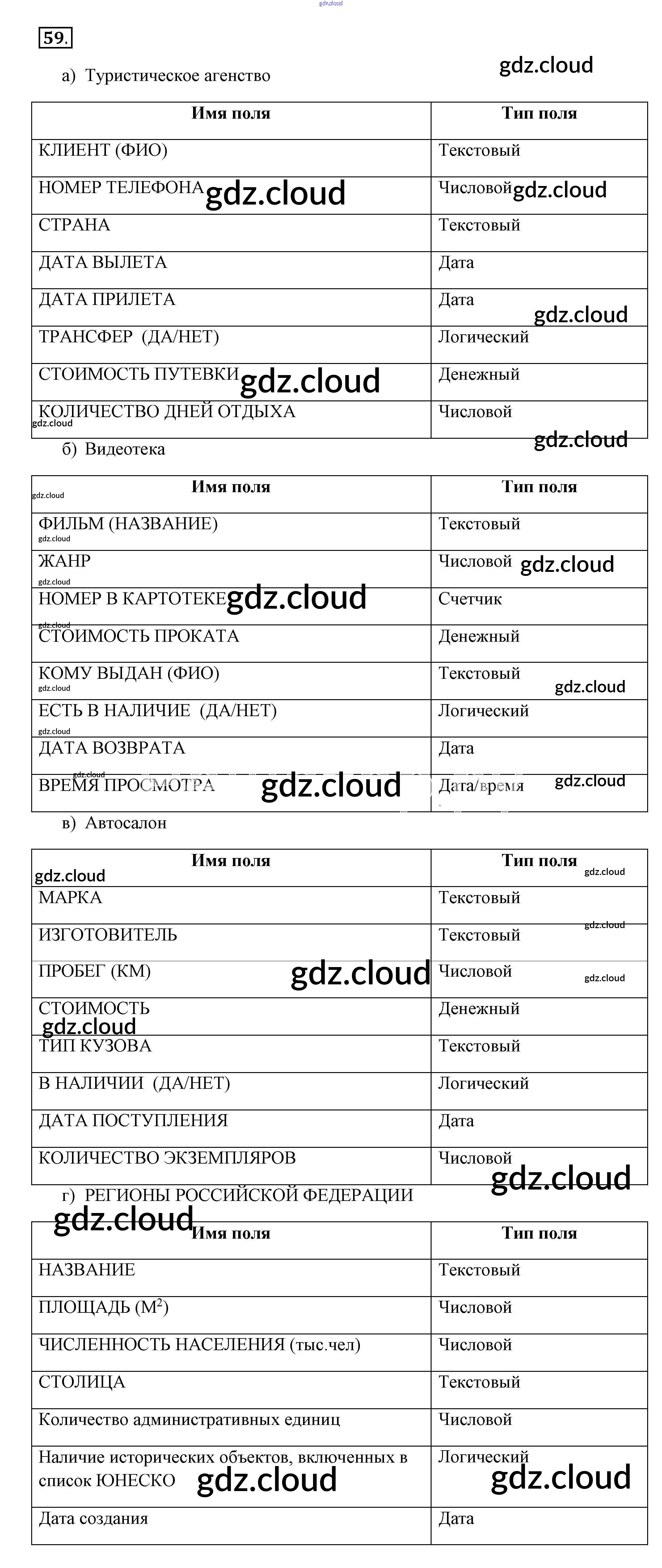 Ответ на задание 59 Рабочая тетрадь Информатика за 9 (девятый) класс Босова Базовый и углубленный уровень 2017 Часть 1, 2