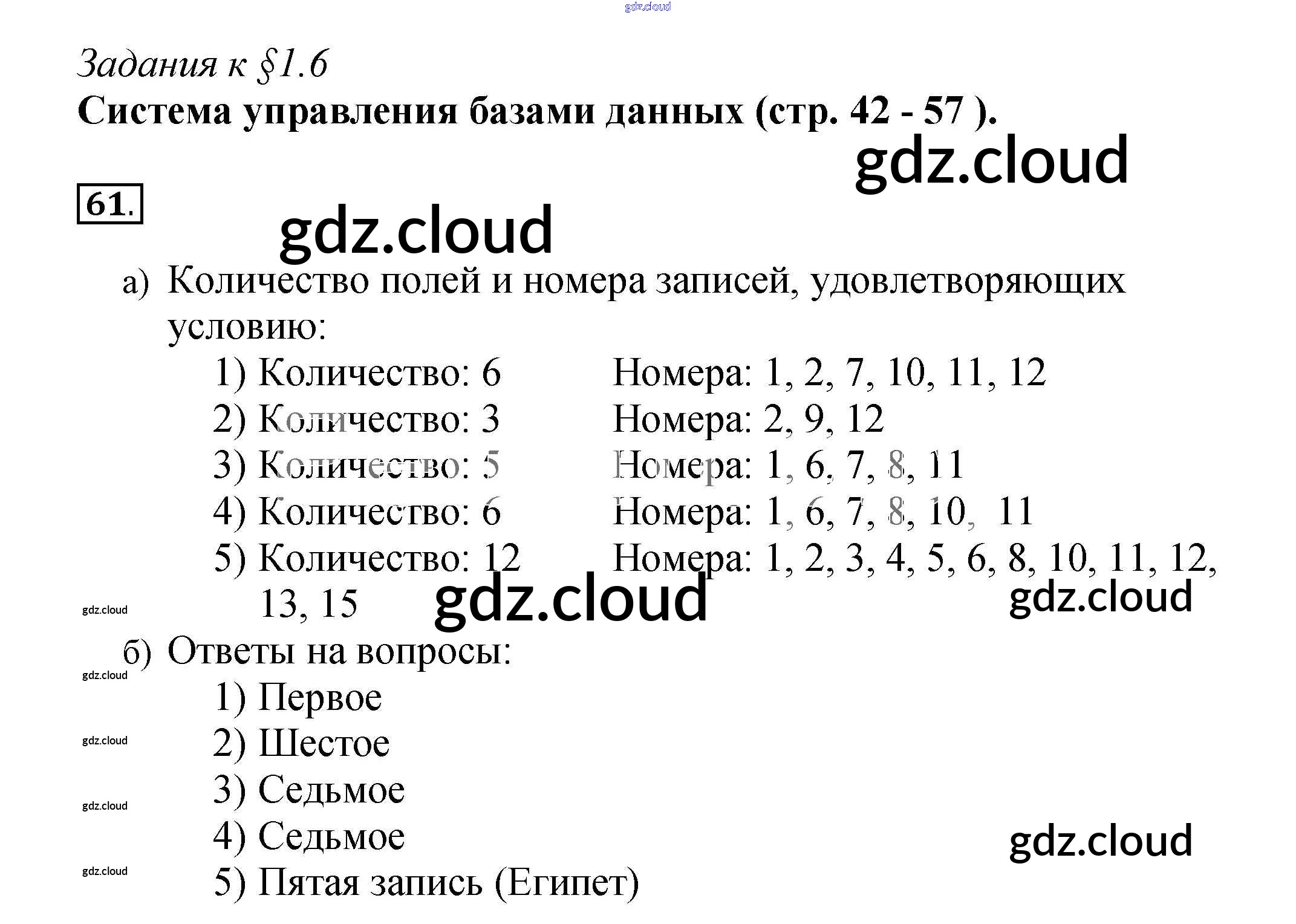 Ответ на задание 61 Рабочая тетрадь Информатика за 9 (девятый) класс Босова Базовый и углубленный уровень 2017 Часть 1, 2