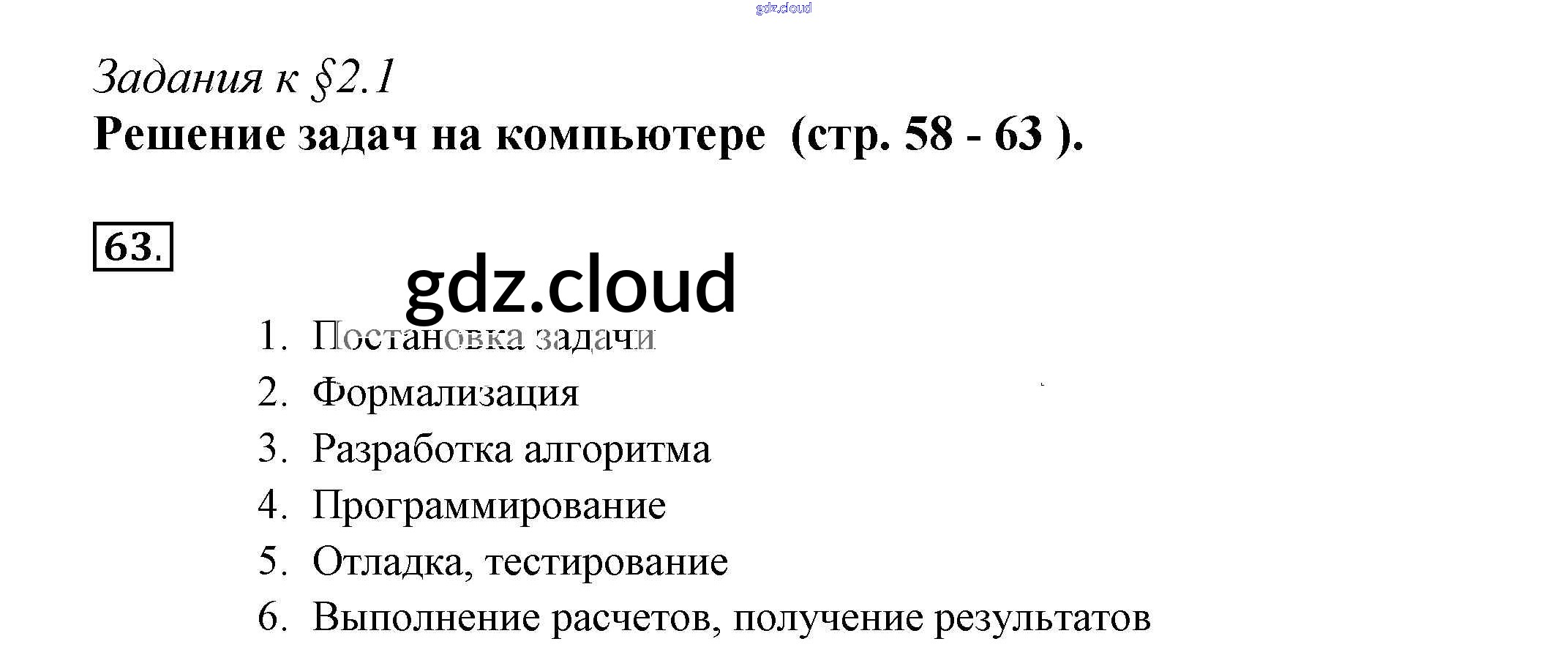 Ответ на задание 63 Рабочая тетрадь Информатика за 9 (девятый) класс Босова Базовый и углубленный уровень 2017 Часть 1, 2