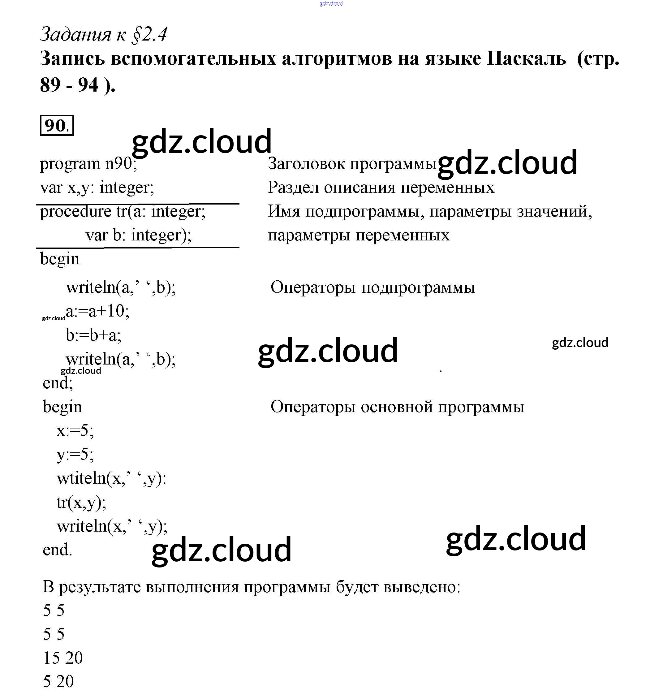 Ответ на задание 90 Рабочая тетрадь Информатика за 9 (девятый) класс Босова Базовый и углубленный уровень 2017 Часть 1, 2